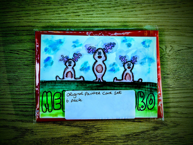 The six pack of cards, and brightly coloured written ones, have been hand-drawn and painted in watercolour; they are the only ones that make them unique. The cards that are line-drawn are my budget-friendly cards, as they are copied and reprinted from the original drawings I made.