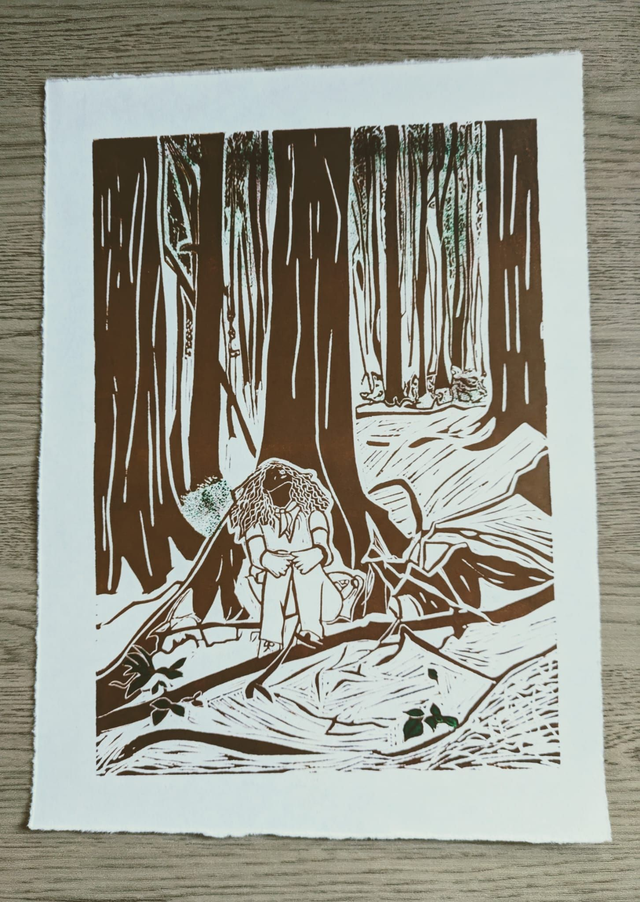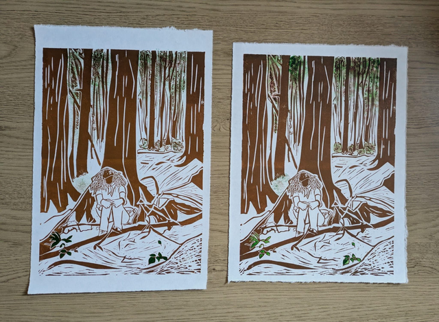 This is an A4-sized print, printed on slightly bigger awagami paper and mounted in an A3 card frame.