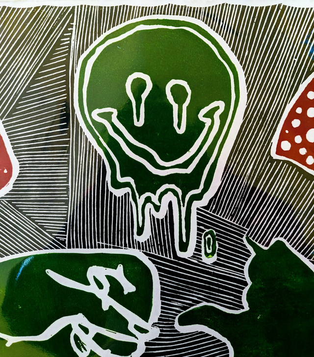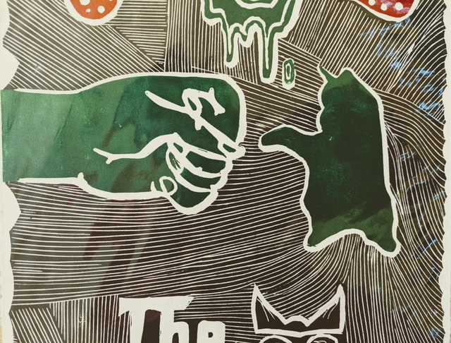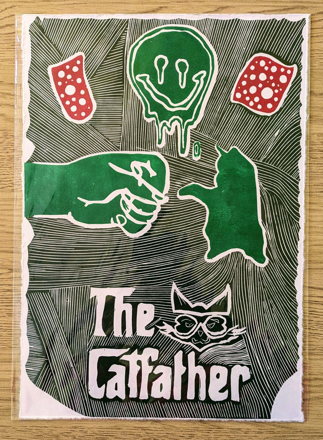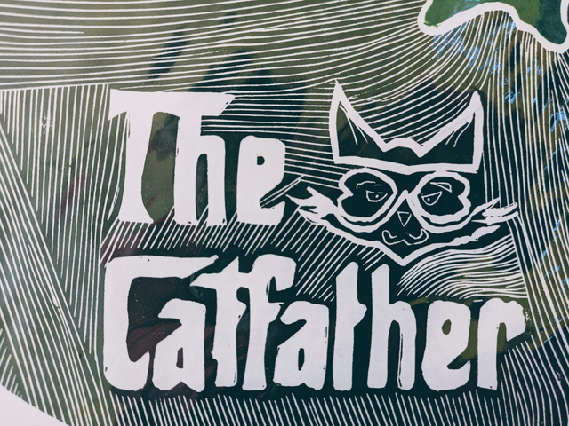 This had to be completed in three stages for the different colours. Inspired by cat lovers, it is about A4-sized printed on bigger Awagami paper and mounted on an A3 card mount.